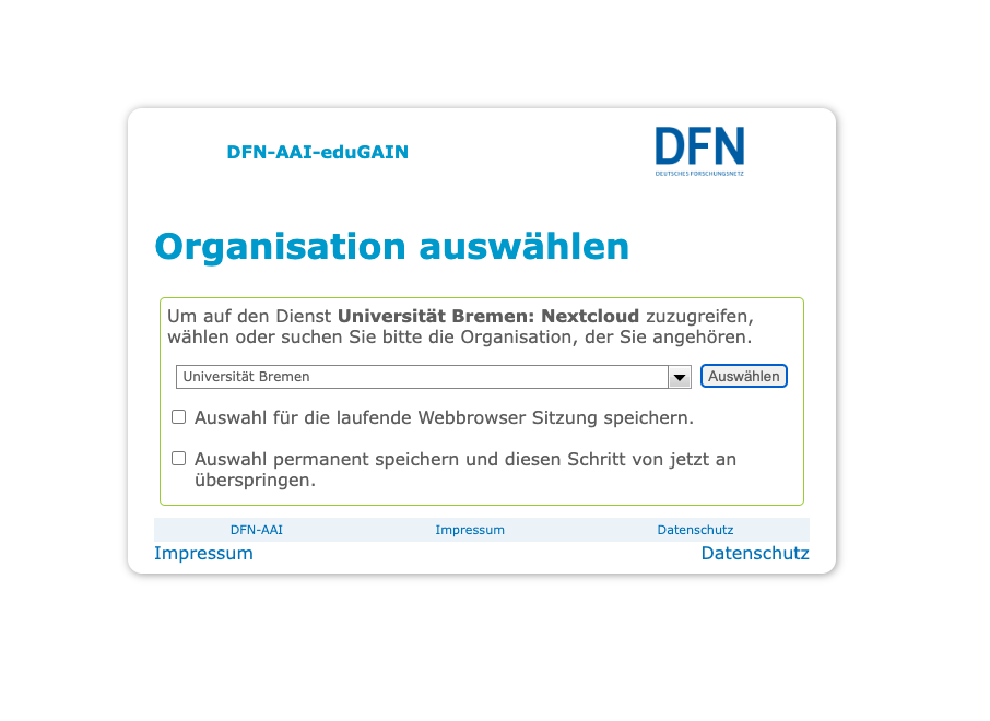 - Navigieren Sie im Browser zur Adresse https://nc.uni-bremen.de/