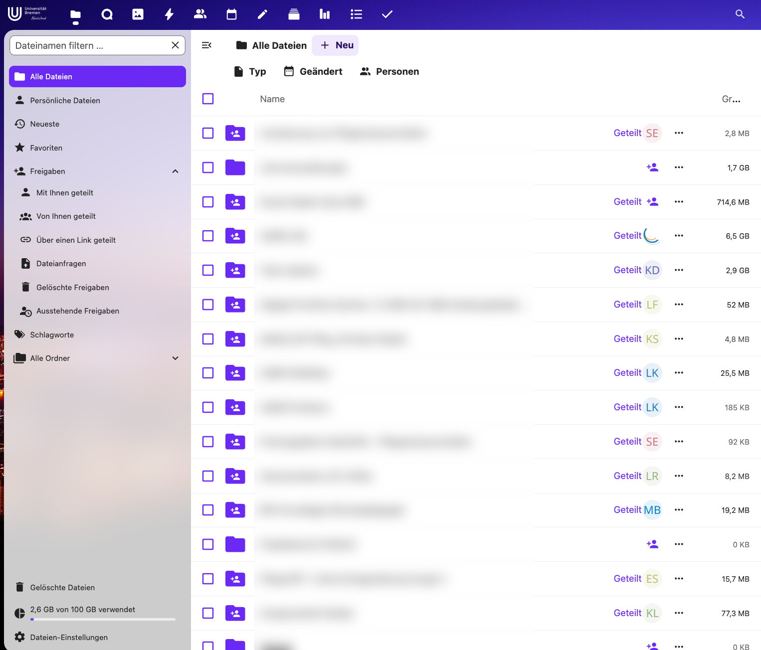 Mit Hilfe der NextCloud können Dateien / Ordner mit anderen Uni-Benutzer:innen geteilt werden.